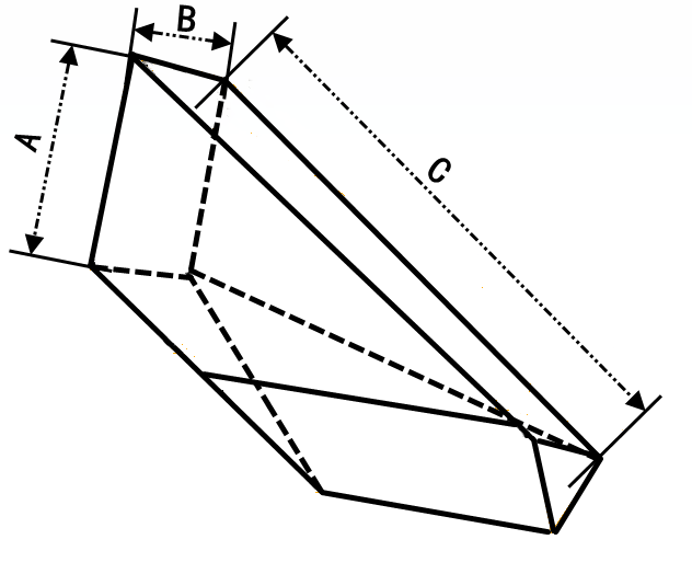 | 序號 | 品號 | 材料 | 理高 | 實高A | 邊長 | 實長C | 側寬B | ∠A | ∠B | ∠C | 屋脊角度 | 鍍膜直角邊 | 鍍膜弦邊 |